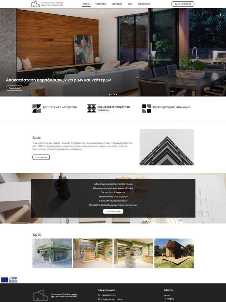 Κατασκευή ιστοσελίδας για Αρχιτέκτονα στην Θεσσαλονίκη. Έγινε επαγγελματική μινιμαλιστική σχεδίαση και παρουσίαση των υπηρεσιών και των έργων.