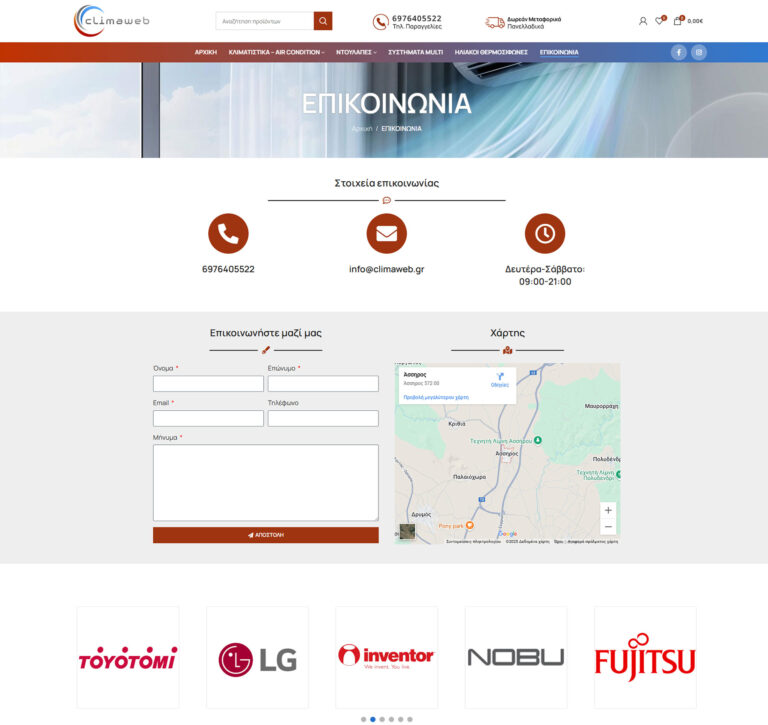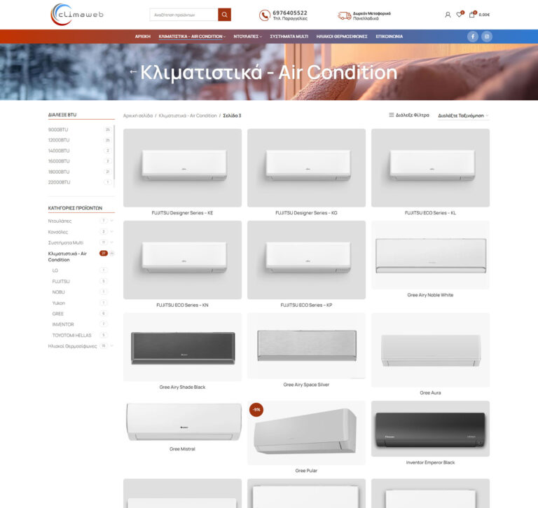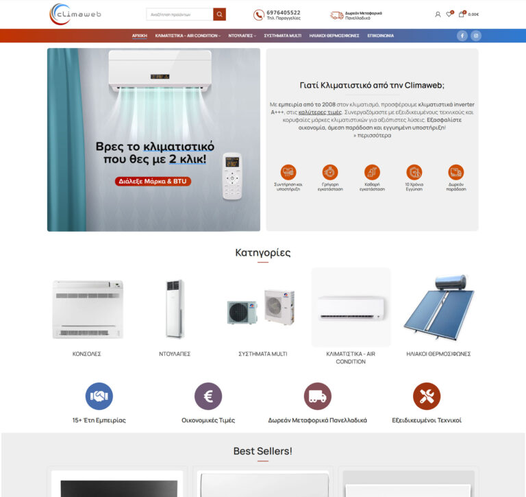 Κατασκευή ιστοσελίδας για Εταιρία Κλιματιστικών. Έγινε επαγγελματική σχεδίαση και αναλυτική παρουσίασης των υπηρεσιών.