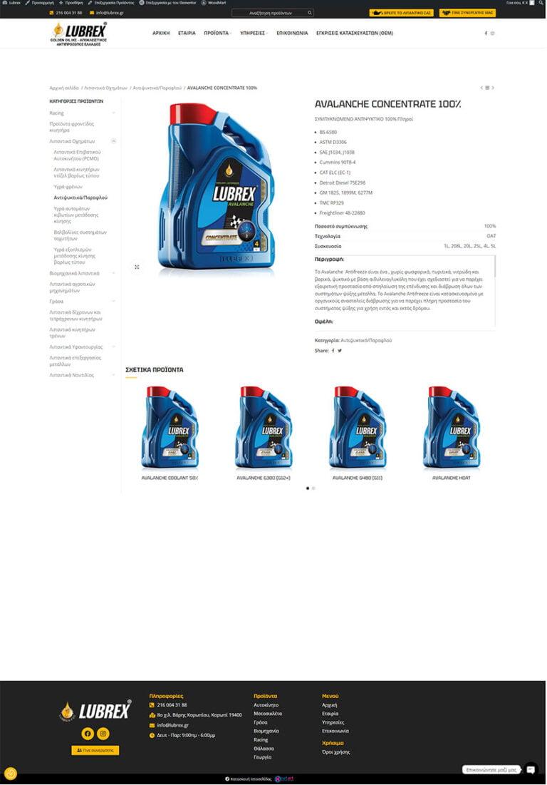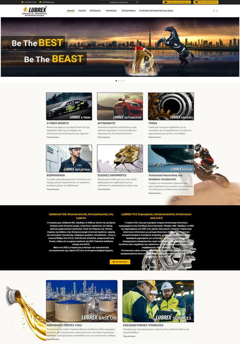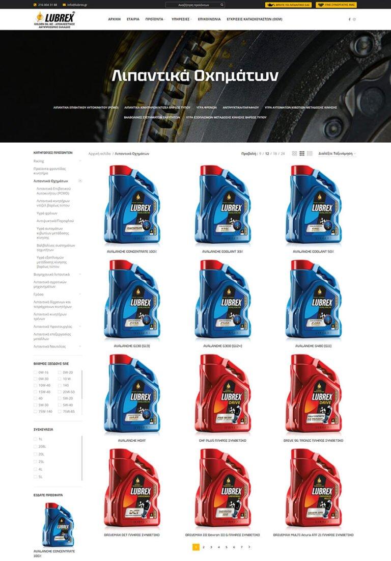 Κατασκευή Eshop σε Ελληνική Αντιπροσωπεία με Λιπαντικά “Lubrex”. Είναι ο Αποκλειστικός αντιπρόσωπος της Ελλάδος. Έγινε επαγγελματική σχεδίαση, ανανεώθηκαν όλα τα προϊόντα και παρουσιάστηκαν με εύκολο τρόπο στον επισκέπτη ώστε να βρίσκει αυτό που ψάχνει. Επίσης διαθέτει ζωντανή αναζήτηση.