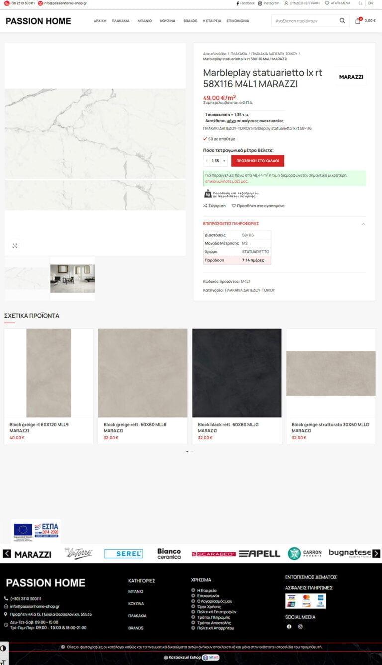 Στη σελίδα προϊόντος η αρίθμηση με τις ποσότητες είναι ανάλογη των τετραγωνικών που καλύπτουν τα πλακάκια ώστε ο πελάτης να επιλέγει σωστά την ποσότητα που επιθυμεί.