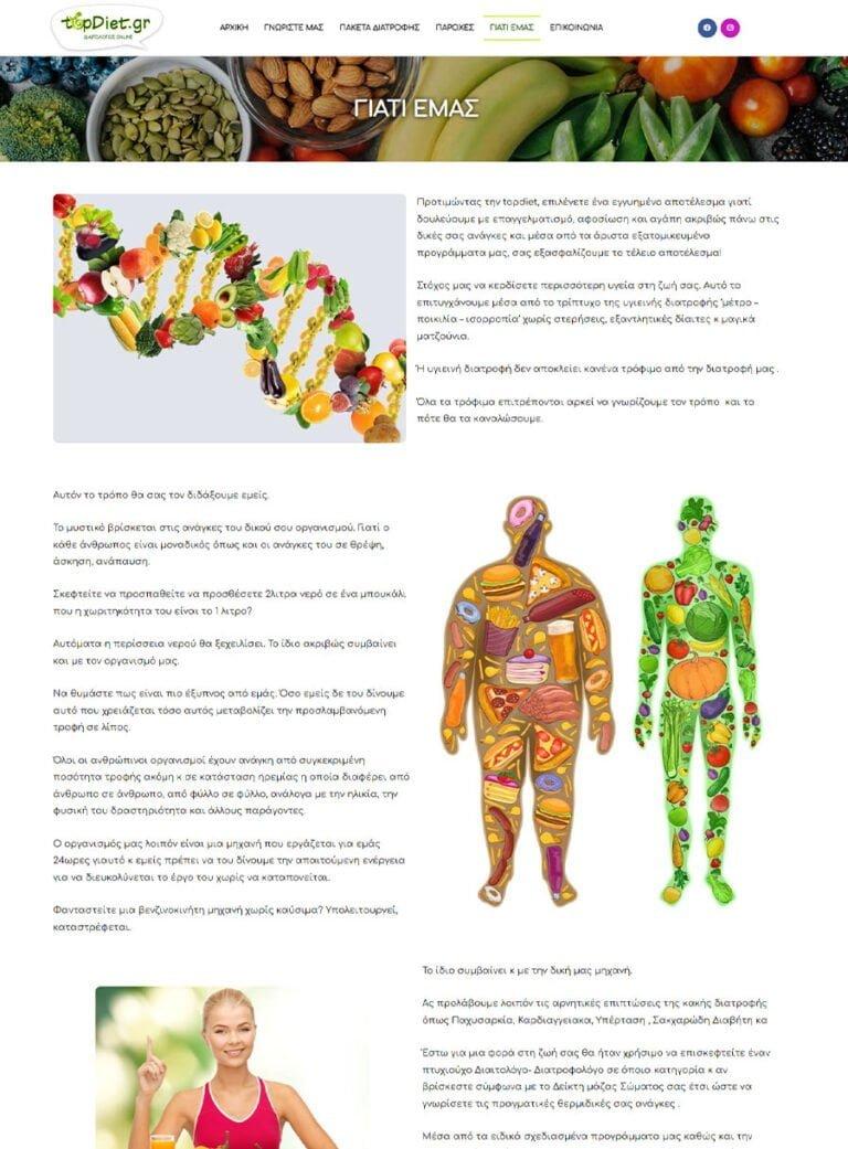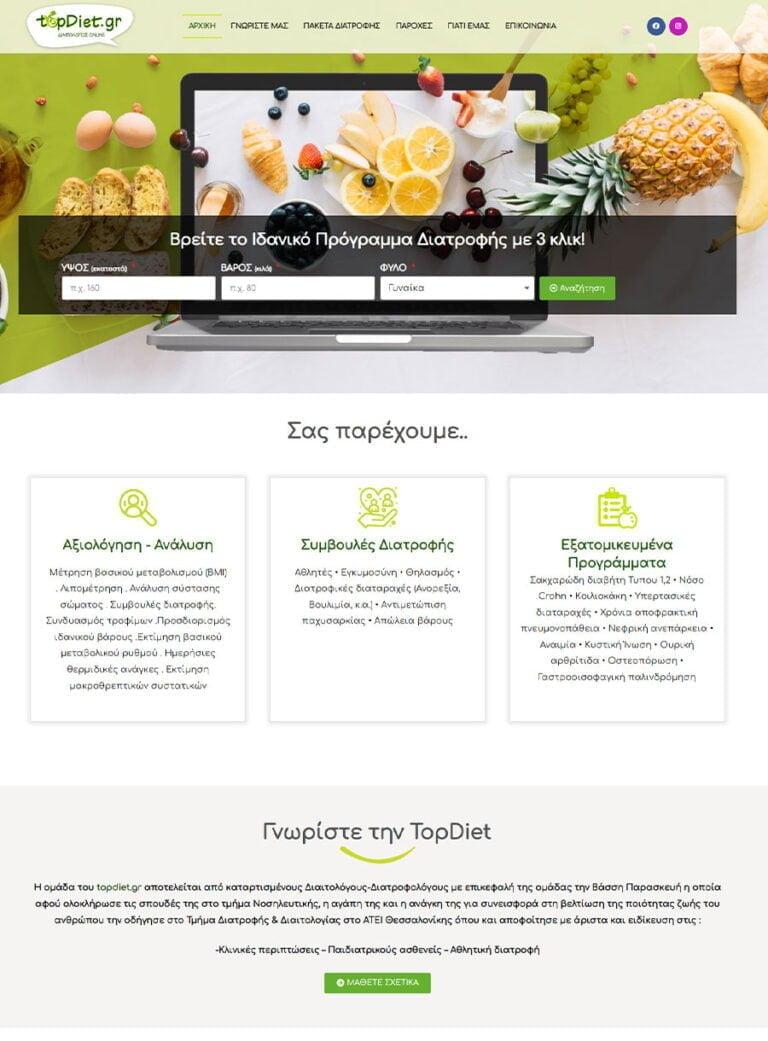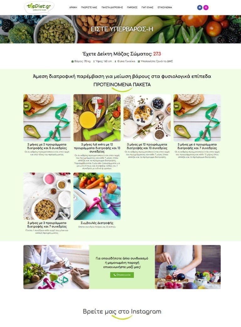 Κατασκευή ιστοσελίδας για διαιτολόγο στον Εύοσμο Θεσσαλονίκης. Έγινε επαγγελματική σχεδίαση και σχεδιάστηκε υπολογιστής Δείκτη Μάζας Σώματος που προτείνει τα κατάλληλα πακέτα διατροφής.