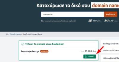 Το domain name είναι το όνομα της ιστοσελίδας – eshop σου. Π.χ. αν πουλάς υπολογιστικά είδη ένα καλό όνομα είναι το www.computers.gr