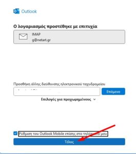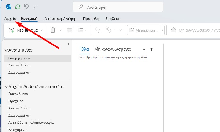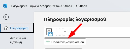 Βήμα 1Ανοίγω το Outlook και πατάω Αρχείο->Προσθήκη λογαριασμού