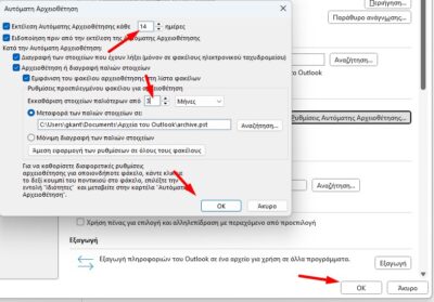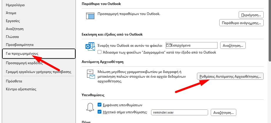 2) Επιλέγω Για προχωρημένους -> Ρυθμίσεις Αυτόματης Αρχειοθέτησης…